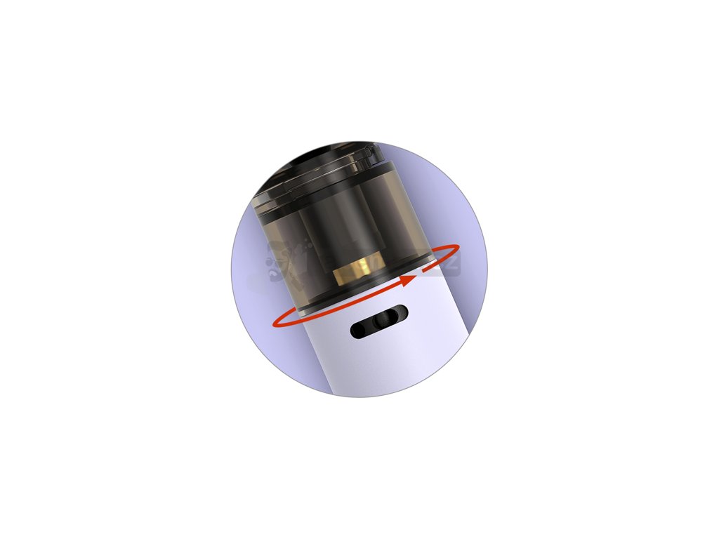 Plně regulovatelné airflow Přímo pod nasazenou cartridgí se nachází otvor pro přísun vzduchu do cartridge během potahování. Otáčením cartridge na těle baterie si tento otvor otevíráte, nebo přivíráte, díky čemuž si budete moci velice pohodlně, rychle a snadno upravit výslednou tuhost potahu. Regulace přívodu vzduchu ještě nikdy nebyla snazší. |