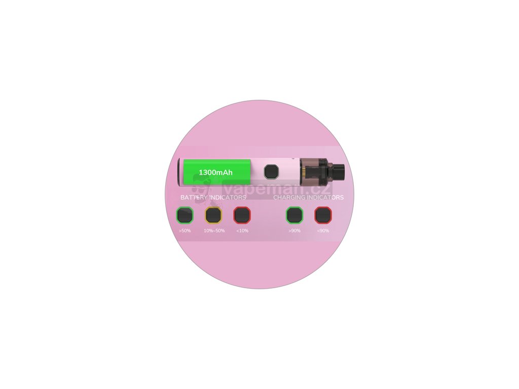 Velká kapacita baterie V těle e-cigarety na vás čeká integrovaná baterie s velkou kapacitou 1300 mAh, která si u slabších kuřáků bez problému poradí s celodenním provozem. Uvnitř tlačítka v přední části se navíc nachází indikační LED dioda, která vás neustále informuje o stavu baterie jak během používání, tak také během samotného dobíjení. Baterii je možné dobíjet pomocí portu USB-C na těle e-cigarety. |