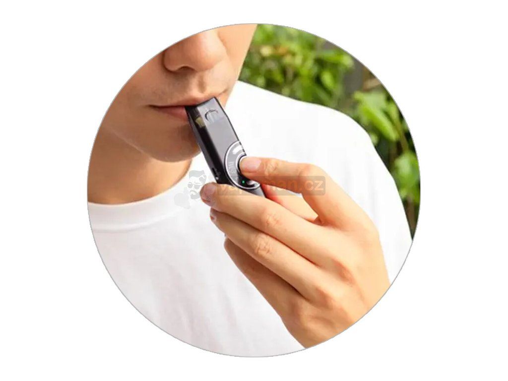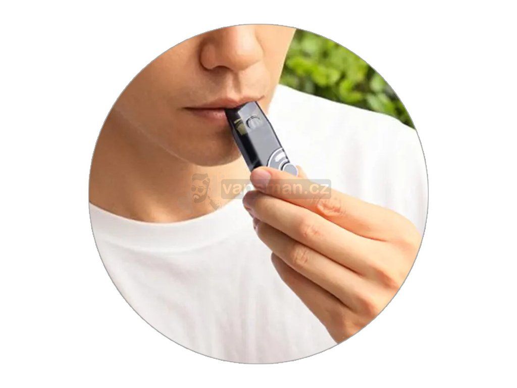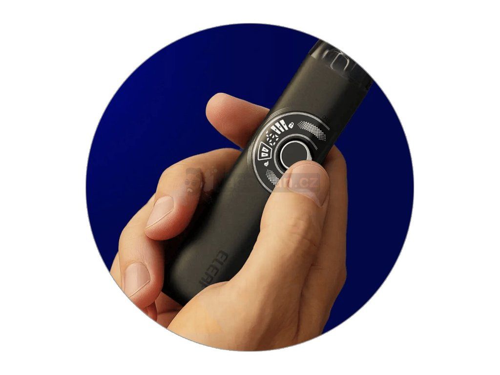Součástí ovládací jednotky zařízení je také zajímavý kulatý displej s několika ikonami a segmentovým ukazatelem právě nastaveného výstupního výkonu. Všechny podstatné prvky tak máte neustále na očích a snadno si ověříte, jaký máte nastavený režim, jaký je stav baterie, jak vysoký máte výkon a zda máte uzamčené tlačítko.