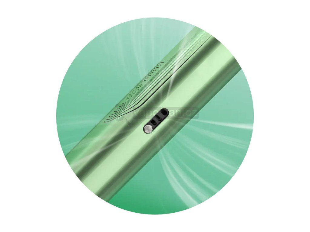Jinak precizně uhlazený design oživuje na přední straně přítomnost LED indikátoru, který přímo při potahu hraje všemi barvami a zároveň také uživatele informuje o stavu baterie. Podle jeho zelené, modré nebo červené barvy snadno poznáte aktuální úroveň nabití e-cigarety. Během vapování budete mít tedy vždy přehled o tom, zdali jste ještě v pohodě a kdy už je potřeba vyhledat nabíječku.