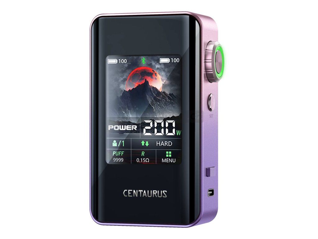 Lost Vape Centaurus BT200 je špičkově navržený box mod plný pokročilých technologií a bohatých funkcí, které dokáží oslovit naprosto všechny příznivce pokročilého vapování. Personalizujte si svůj požitek z vapování díky modernímu čipsetu Quest X 3.0 a inteligentnímu připojení Bluetooth a užívejte si všechny výhody modu naplno. Najděte si svůj výstupní režim díky bohaté nabídce až sedmi režimů a zažijte maximální výkon díky pohonu na dvě externí baterie 18650 a maximálnímu výkonu až 200 W. Mějte přehled o všech potřebných parametrech s masivním celobarevným TFT 2.4" displejem a vychutnejte si pohodlnou uživatelskou obsluhu s intuitivním ovládacím tlačítkem 3v1 a přepínatelnými UI. Lost Vape Centaurus BT200 představuje to nejlepší ze současné nabídky tohoto výrobce a ukazuje, že vaping může být opravdovou zábavou.
