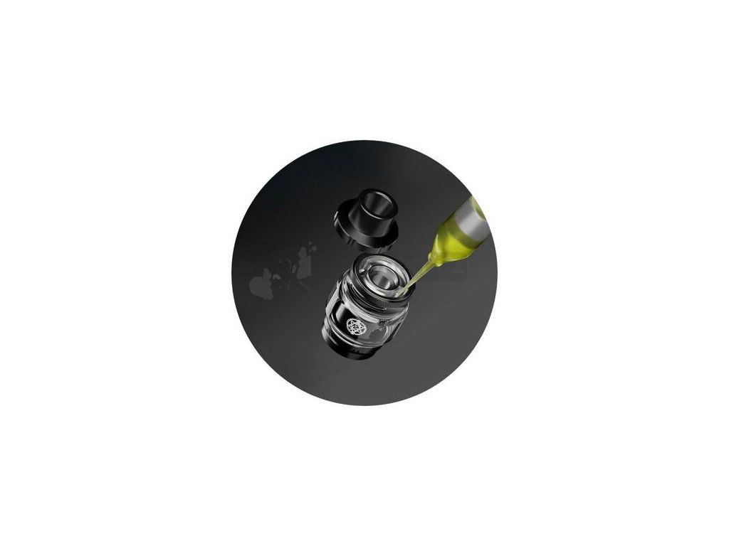 Atomizér se pyšní inovativním a praktickým uzávěrem pro plnění liquidu. Vrchní část disponuje utěsněným bajonetovým systémem, který stačí pootočit o čtvrt otáčky a sejmout z těla atomizéru. Odkryje se tak před vámi velkorysý plnící otvor, díky kterému během chvilky znovu doplníte plnou kapacitu tanku vaším oblíbeným liquidem i z větších typů lahviček.