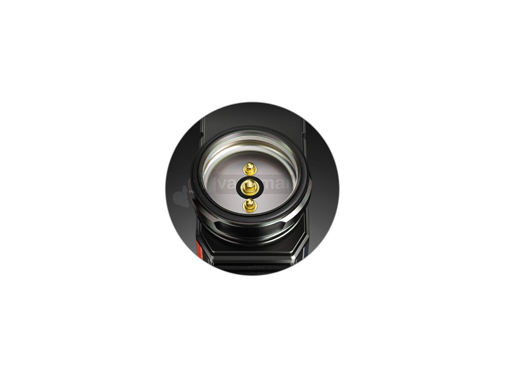 | Slot pro dvě baterie Tělo modu nabídne slot pro vložení dvou baterií typu 18650, díky pohonu na dvě baterie lze dosáhnout ohromujícího výstupního výkonu a perfektního náběhu žhavení. Mod pracuje s výkonem až 200 W, čímž dodá vždy dostatek husté a chutné páry i tem nejnáročnějším vaperům. Baterie nejsou součástí balení a je nutné dokoupit je samostatně, výhodou pohonu na externí baterie je to, že můžete v modu používat své oblíbené baterie a kdykoliv si je vyměnit za plně nabité. |