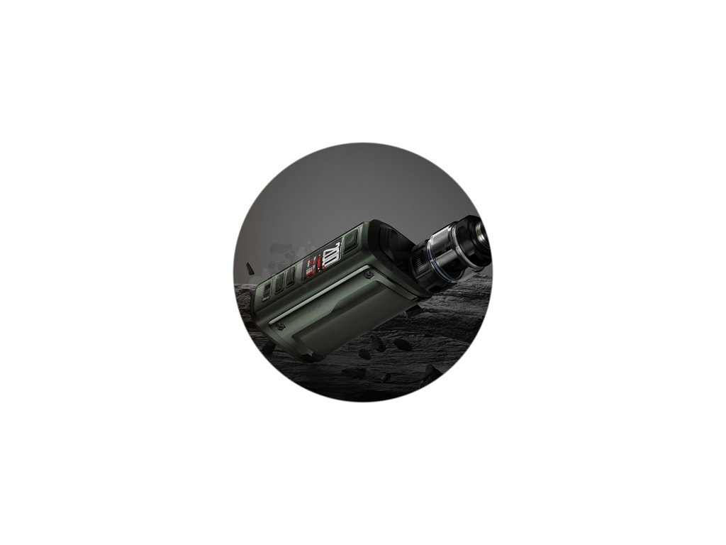 Druhá generace populárního modu VooPoo Argus GT s jednoduchým označením Argus GT II nabídne řadu vylepšení pro ještě snazší nastavení a zároveň mnohem širší možnosti využití díky podpoře TC režimů a novému režimu TURBO. Těšit se můžete také na přepracovaný design a upgradovanou verzi čipu GENE.TT, který podporuje výstupní výkon až do 200 W. Kovové tělo ze zinkové slitiny je opatřeno koženým panelem a certifikací IP68, mod je proto nesmírně odolný vůči vnějším vlivům, robustní a stylový. Rozměry samotného modu činí 90 x 54 x 29 mm. Do jeho těla je možné nainstalovat až dvě baterie typu 18650 pro zisk maximálního výstupního výkonu a rychlého náběhu žhavení. Baterie bude možné dobíjet přímo v modu díky podpoře rychlého standardu nabíjení skrz USB-C port proudem až 3 A. V jádru modu se nachází integrovaný čip GENE.TT 2.0 pro perfektní výsledky při žhavení, snadné uživatelské nastavení a velký výběr výstupních režimů.