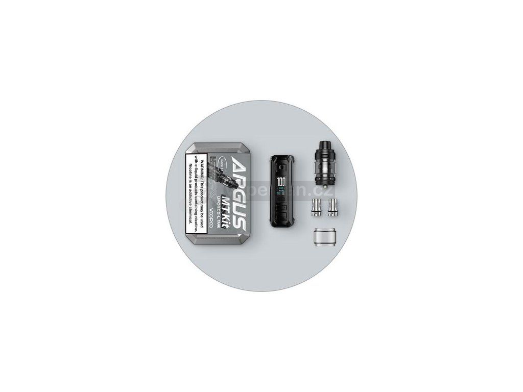 Upgradované balení modelu Argus MT Kit nabídne nový clearomizér VooPoo UFORCE-L Tank pro přímé potahování do plic. Tento clearomizér disponuje obrovským základním objemem 5,5 ml a nabídne jednoduché vrchní plnění a vrchní systém airflow pro zisk co nejlepší chuti během potahování. Příjemně dokresluje design modu a esteticky ladí s jeho křivkami.