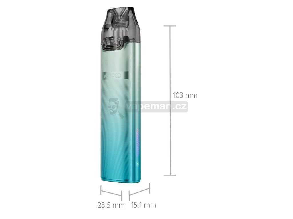 VooPoo Vmate i3 Pod Kit je elegantní a nádherně zpracovaná e-cigareta pyšnící se abnormálně lehkou konstrukcí. Celé tělo je vyrobeno z odlehčené hliníkové slitiny a celková hmotnost činí pouhých 49.8 g. Během přenášení v kapse ji tak ani neucítíte a velice pohodlně se drží také v ústech a v dlani během vapování. Celkové rozměry se zastavily na krásných 103 x 28.5 x 15.1 mm. Po stránce barevných zpracování výrobce sází na jistotu a opět uvádí na trh své oblíbené barevné varianty, mezi nimiž nechybí například populární Neon nebo tradiční Black.