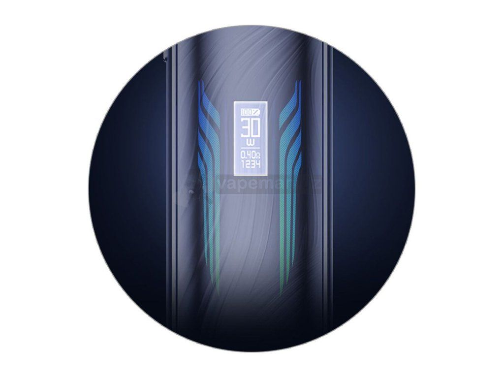 O všech potřebných parametrech budete mít neustálý přehled díky praktickému skrytému displeji na předním panelu. Tento displej je zapuštěn do těla a nevyčnívá, krásně tedy splyne s celou konstrukcí zařízení. Na displeji si můžete snadno ověřit aktuální procentuální stav baterie, nastavený výkon, odpor připojené cartridge, zvolený výstupní režim nebo aktuální počet potahů.