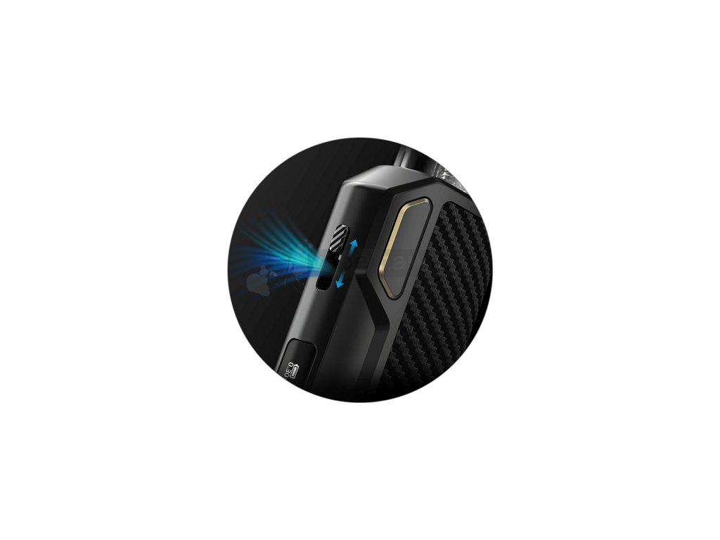 Populární manuální regulace airflow nesmí chybět ani u tohoto typu e-cigarety. V boční části je vybavena praktickým manuálním posuvníkem, který slouží pro uzavření, nebo otevření vzduchového otvoru s možností plynulé regulace. Jedním pohybem prstu si tak přizpůsobíte výslednou tuhost svým představám.