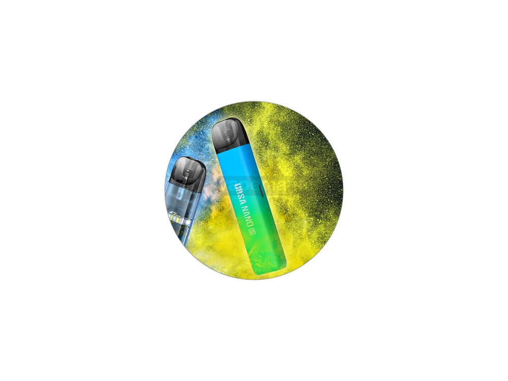 Ve vrchní části najdete populární cartridge ze série Ursa Nano. Cartridge disponuje základním objemem 2 ml a v jejím jádru se nachází integrované žhavící tělísko s odporem 0,8 ohm pro rychlou odezvu při žhavení a odpaření co největšího množství páry. Chuť při každém potahu je tak skutečně strhující. Nesmí chybět ani oblíbený prvek v podobě bočního plnění se silikonovou záslepkou.
