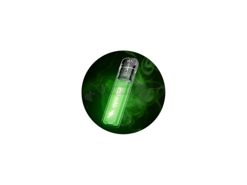 Přímo v těle zařízení se nachází integrovaná baterie s velkou kapacitou. Ta činí krásných 800 mAh, zařízení tak zvládne intenzivní mnohahodinový provoz a dlouhou výdrž na jedno nabití. V případě úplného vybití vás potěší přítomnost rychlého portu USB-C ve spodní části, e-cigareta podporuje nabíjení proudem až 2A, zvládne se tak dobít za velmi krátkou dobu.