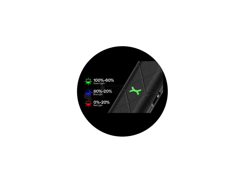 Přední panel zdobí tradiční LED indikační dioda ve tvaru písmene X. Tato dioda vás bude během potahu informovat o aktuálním stavu vaší baterie. Nabídne hned tři barvy pro rozdílnou procentuální hodnotu baterie, neunikne vám tak naprosto žádná informace a budete mít stálý přehled o tom, zda je potřeba e-cigaretu dobít nebo zda můžete nadále v klidu vapovat.