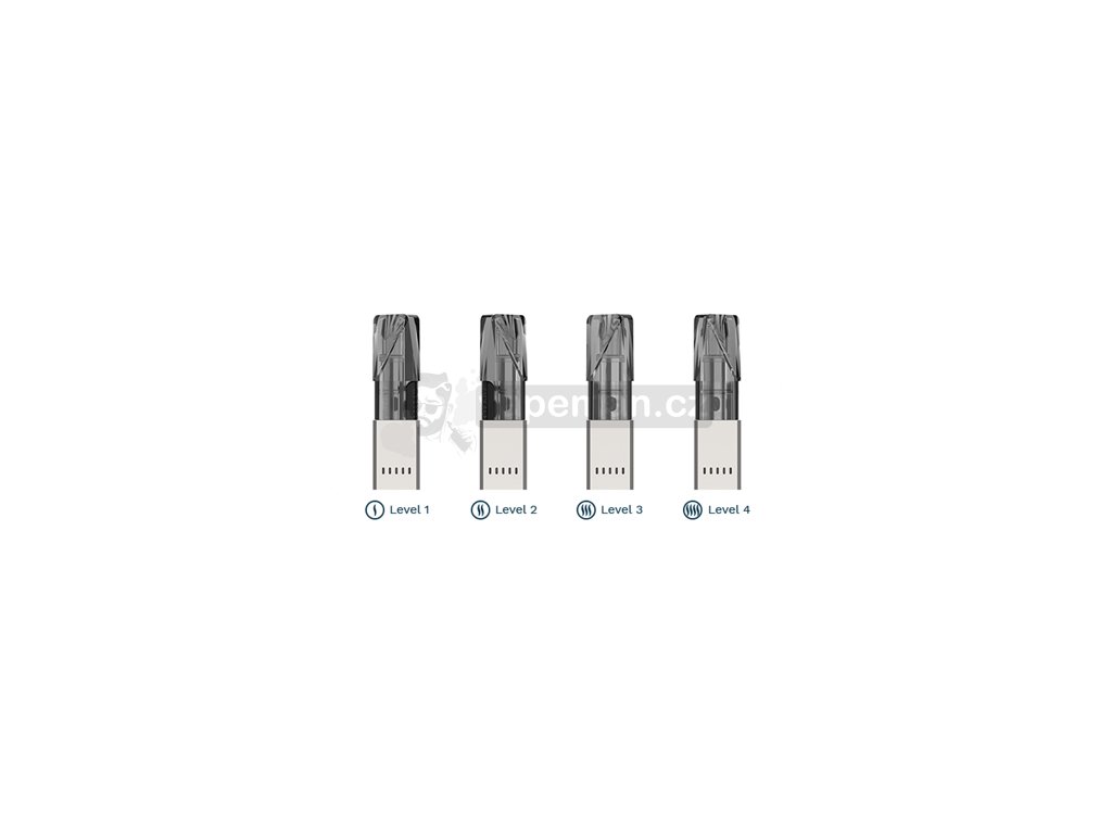 Parametry produktu: Rozměry: 110 x 13 x 13 mm Výstupní výkon: 13 W Objem cartridge: 1,2 ml Odpor cartridge: 1,2 ohm Kapacita baterie: 350 mAh Nastavení airflow: 4 úrovně (otáčením cartridge) Dobíjení: USB-C port (5V/0,5A) |