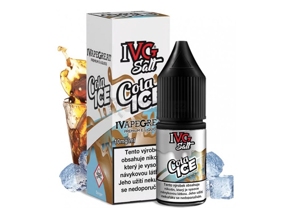 Vychlazená kola s kostkami ledu... Prémiové britské liquidy IVG s nikotinovou solí v poměru 50VG/50PG. Liquidy SALT se od běžných liquidů odlišují tím, že mají nižší PH a obsahují stále více oblíbenou a žádanou nikotinovou sůl, díky které dochází k rychlejší a kvalitnější vstřebatelnosti = bez dráždivého pocitu v krku oproti klasickým liquidům.