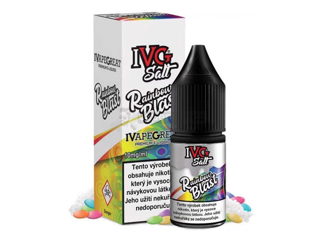 Milovníci sladkých bonbonů zbystřete, Rainbow Blast jsou sladké ovocné bonbóny s lehkou mentolovou dochutí... Prémiové britské liquidy IVG s nikotinovou solí v poměru 50VG/50PG. Liquidy SALT se od běžných liquidů odlišují tím, že mají nižší PH a obsahují stále více oblíbenou a žádanou nikotinovou sůl, díky které dochází k rychlejší a kvalitnější vstřebatelnosti = bez dráždivého pocitu v krku oproti klasickým liquidům.