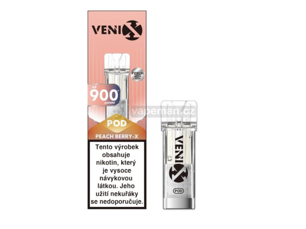 Venix Max PRO Pod - PEACH BERRY-X (broskev a borůvka). Tento pod přináší intenzivní a osvěžující chuť, která baví při každém potahu. Díky keramickému jádru zůstává chuť dokonale čistá a stabilní od začátku až do konce.
