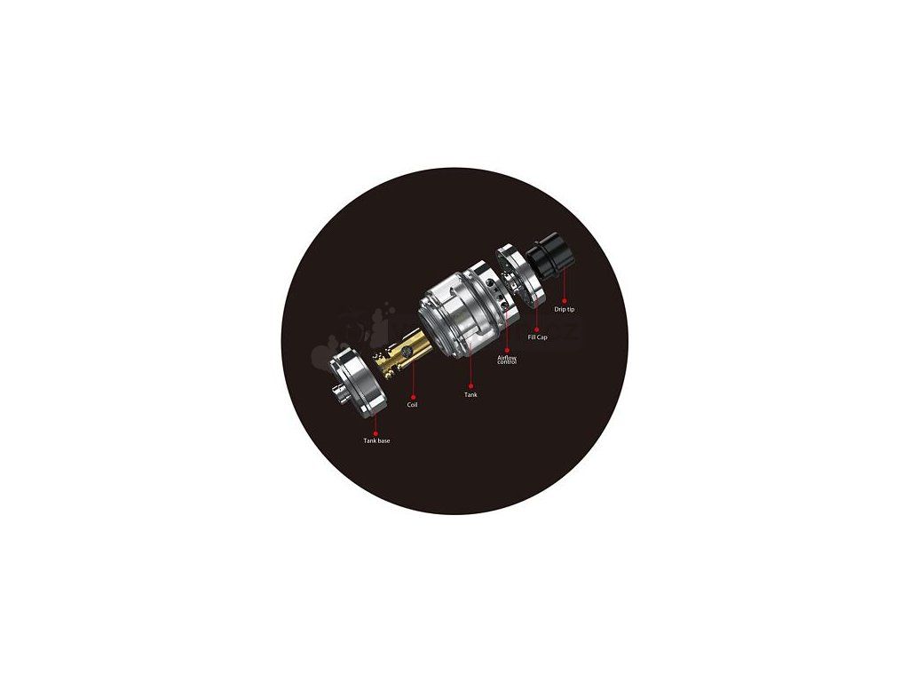 Pro maximální pohodlí a zabránění únikům e-liquidu je atomizér vybaven systémem horní regulace airflow. Otáčením regulačního kroužku si tak můžete vyladit potřebnou tuhost potahu. K dispozici je řada menších otvorů pro detailní konfiguraci přívodu vzduchu. Ať už preferujete volnější či utaženější potah, obě varianty si nastavíte během pár vteřin.