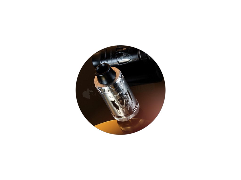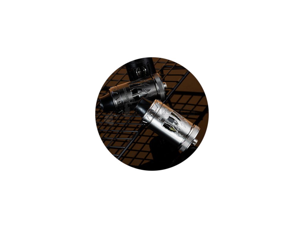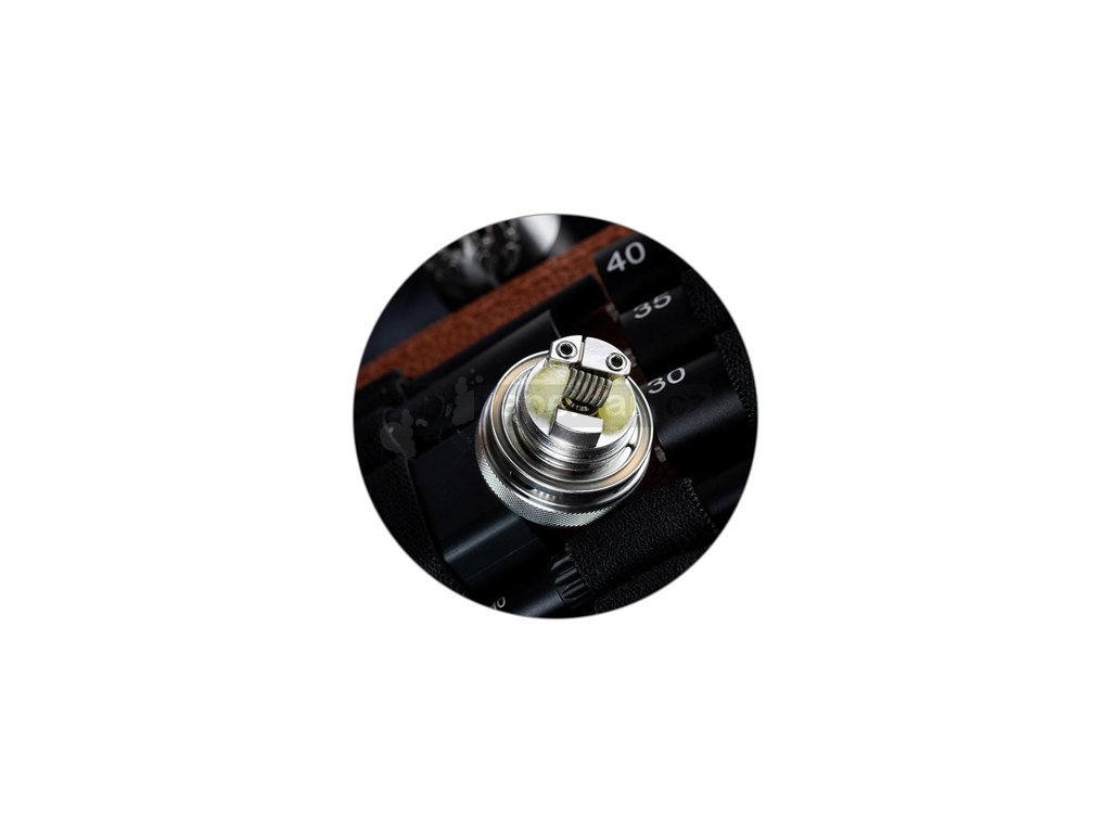 | Velký objem a vrchní plnění Vzhledem k využití pro DL potahování zvolil výrobce větší kapacitu tanku, aby nedocházelo k častému úbytku e-liquidu. U atomizéru Lindwurm RTA se tak můžete těšit na obrovský tank s objemem 5 ml. S touto kapacitou si poradí také s intenzivním užíváním bez potřeby častého plnění. V případě nutnosti pak jen pootočíte uzávěrem a během pár vteřin si doplníte e-liquid zpět. |