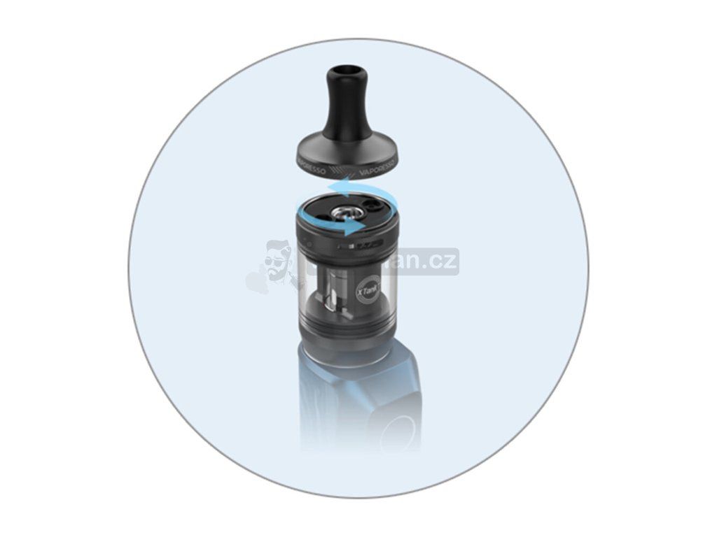 Vaporesso XTank T se pyšní solidním objemem 3ml a praktickou funkcí horního doplňování. Stačí jen pootočit horním top capem a začít plnit. Celý proces zabere sotva pár vteřin, vy se už pak můžete následně opětovně věnovat vapování.